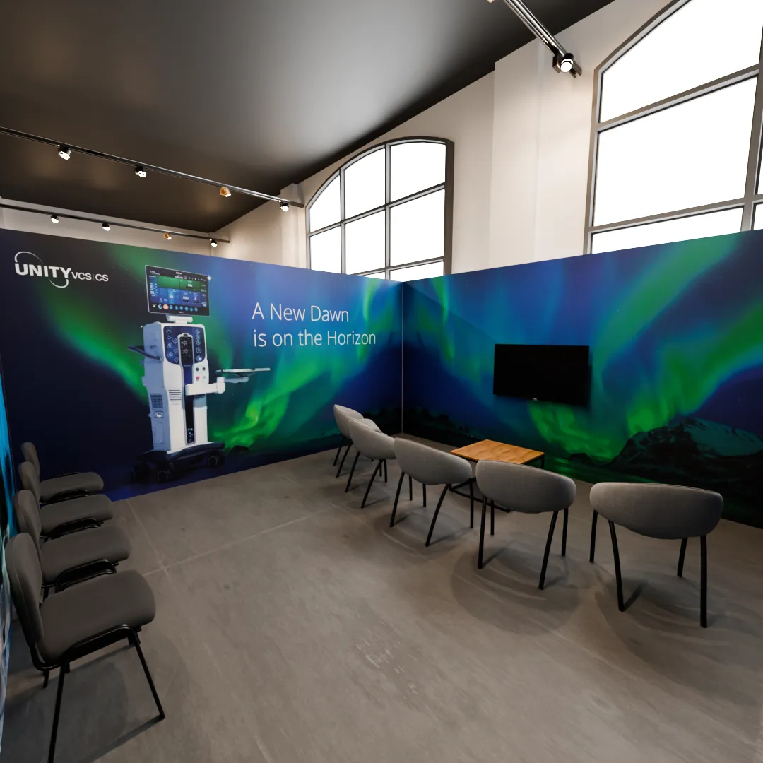 A unified design framework harmonized brand visuals through shared color palettes, typography, and layouts. Interactive zones, featuring touchscreens, AR experiences, and dynamic lighting, showcased surgical efficiency, patient outcomes, and connected workflows. Strategic messaging reinforced Alcon’s leadership in ophthalmic innovation.